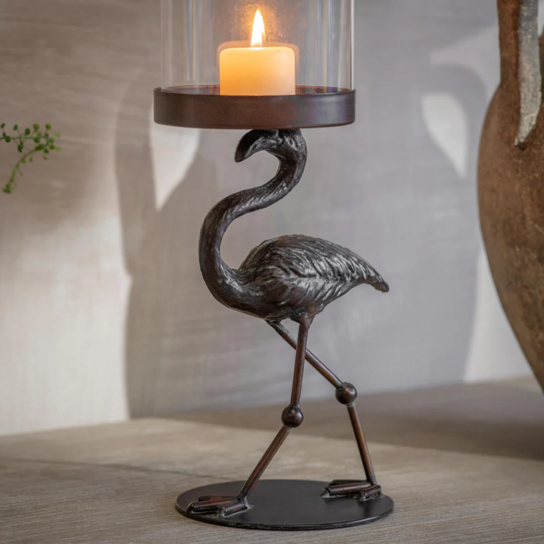 This Bird Hurricane is a striking decorative piece that brings sculptural interest to shelves, sideboards, and consoles. Hand-finished with a softly aged metal surface, the slender bird form supports a clear glass hurricane that gently diffuses candlelight. Balanced and elegant, it creates a warm focal point while adding character to both classic and contemporary interiors.