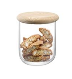 Diameter: 12.5cm, Height: 14cmDue to its handmade nature, the size of this item may vary slightly.Mouth blown by skilled glassblowers to create a cylindrical container. The rim is melted to achieve a soft, smooth finish. The lid is made from natural oak and hand finished for a soft radius. The wood is sourced from sustainably-managed European Forests.Handwash the glass in warm soapy water and dry with a soft cloth. Wipe the wood with a damp cloth and leave to dry naturally.